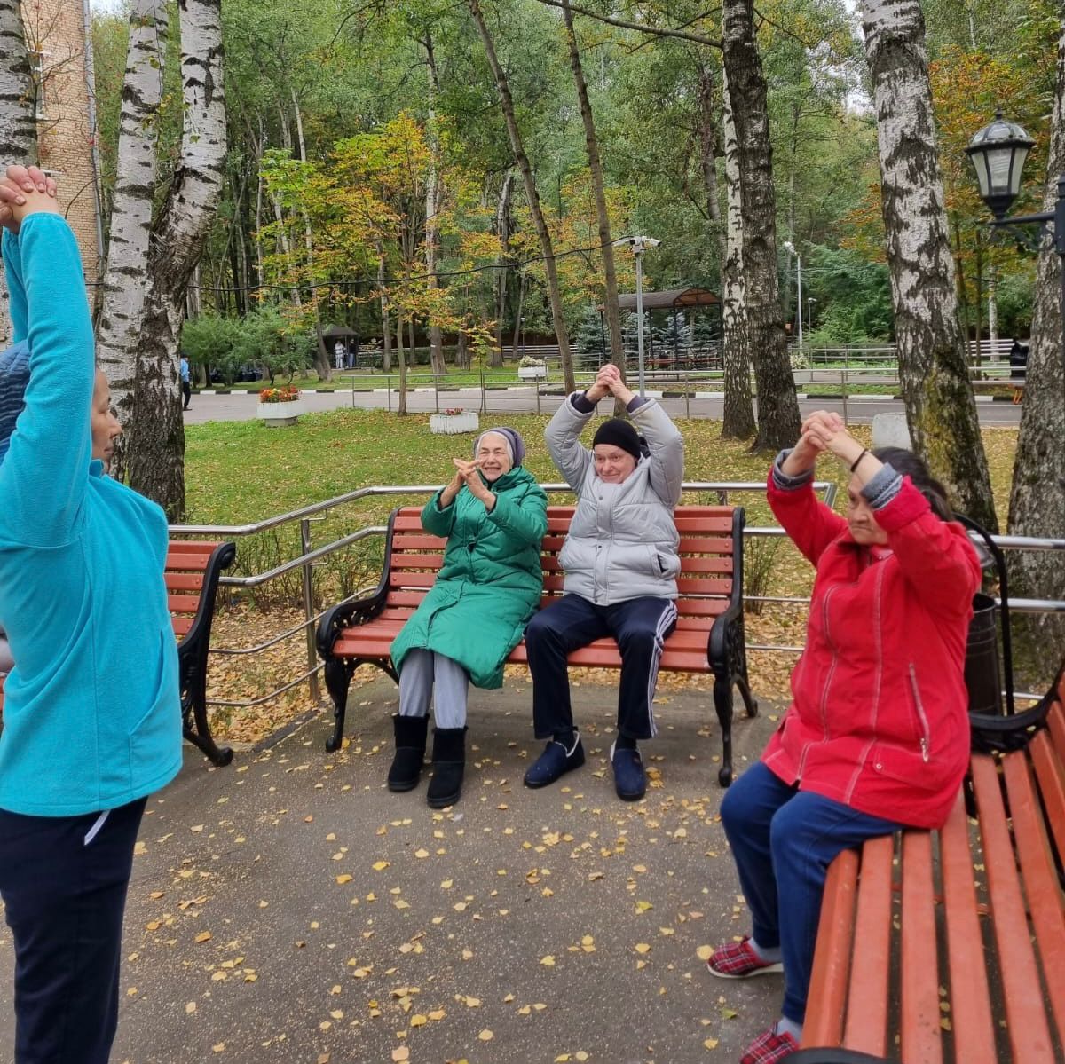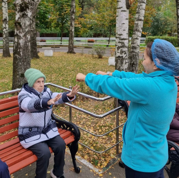 Сегодня в Геронтологическом центре «Северное Тушино» мы провели заключительное занятие по лечебной физкультуре на улице, которое весь летний сезон проходило на свежем воздухе.