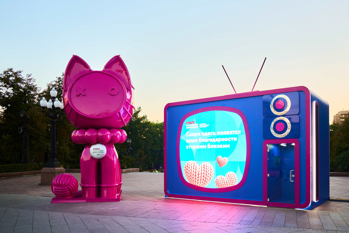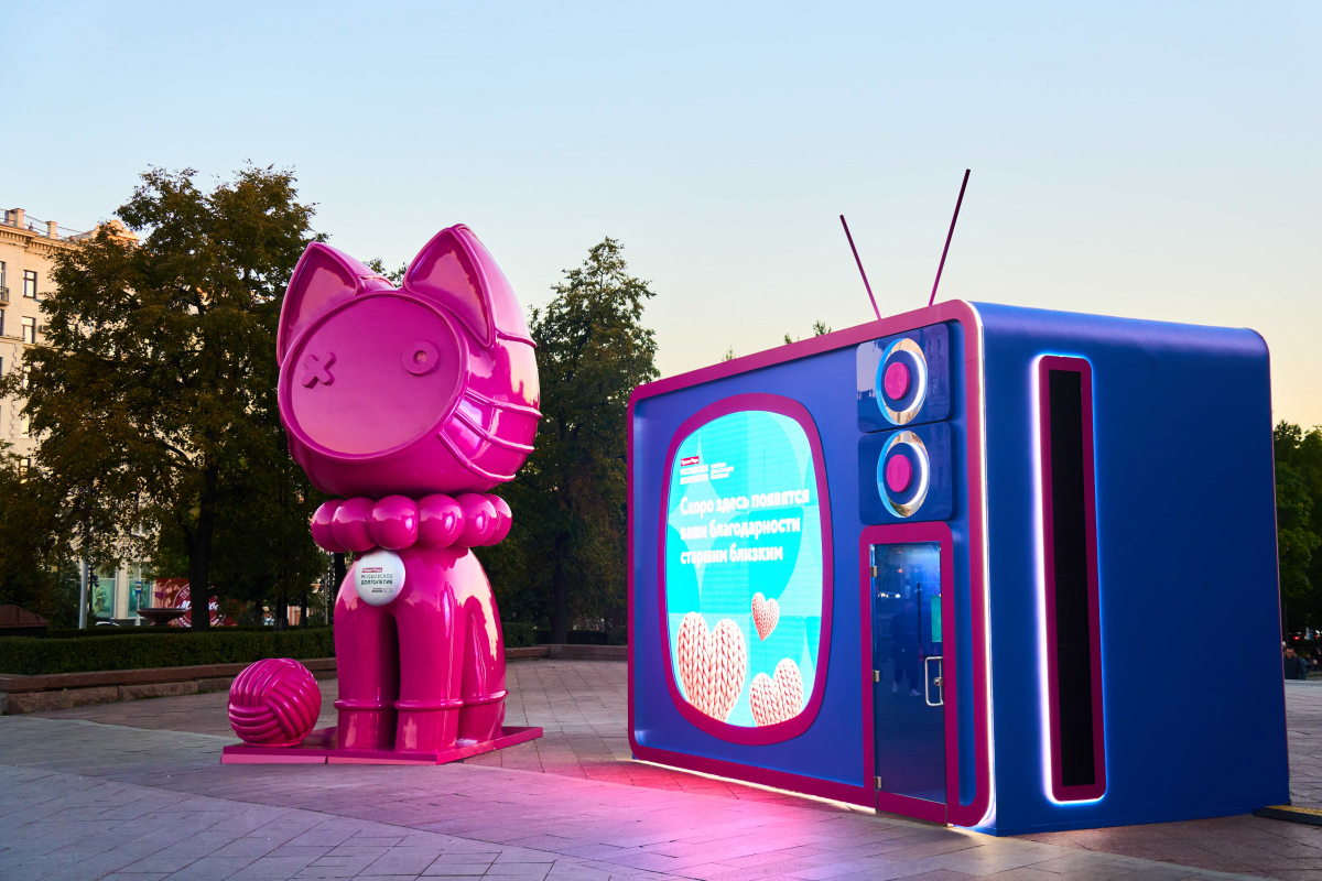 Самые трогательные послания появятся на медиафасадах по всему городу. Также сообщение может появиться на экране арт-инсталляции «Всё здесь не случайно» в Новопушкинском сквере. Для этого с помощью сенсорной панели рядом нужно написать добрые слова близким. Главный герой арт-объекта — кот, олицетворяющий домашний уют, мудрость и тепло, которое нам дарит старшее поколение. Девять жизней кота — это метафора бесконечных возможностей начать всё сначала в любом возрасте. Около кота лежит клубок ниток, символизирующий теплоту семейных уз и связь поколений, а рядом с ним установлен ретро-телевизор, на экране которого будут транслироваться благодарности от москвичей своим близким старшего возраста.