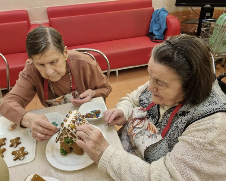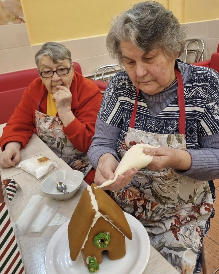 Нина Павловна: «Такой прекрасный, почти детский восторг мы испытали сегодня! Собрать свой домик, украсить его по своему вкусу — это чудесно. И не думала, что в нашем возрасте можно так увлечься, будто снова в детство вернулась. Руки работали, голова думала, а на душе было так светло! Спасибо за этот волшебный день и сладкий результат!»
