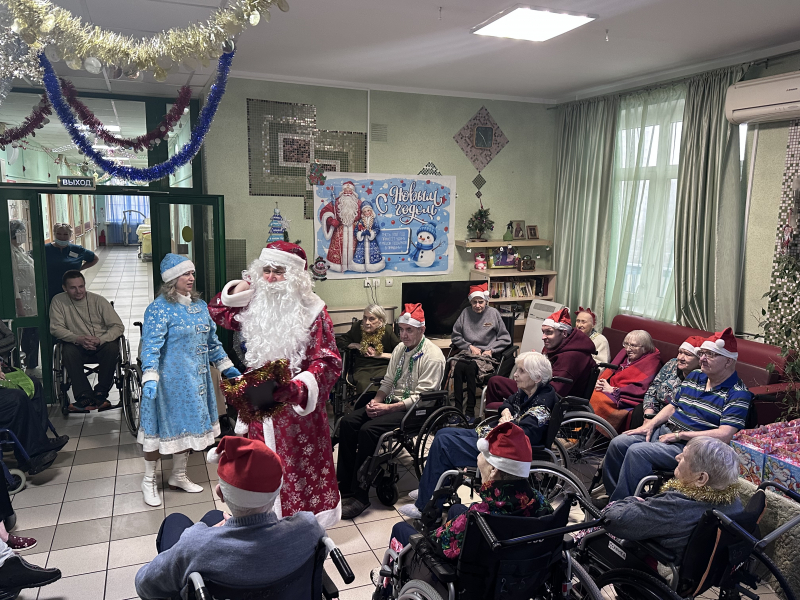 Сегодня к каждому без исключения жителю нашего центра лично заглянули в гости долгожданные Дед Мороз и Снегурочка. Не было ни одного человека, который не участвовал в мероприятии и не услышал добрые пожелания.