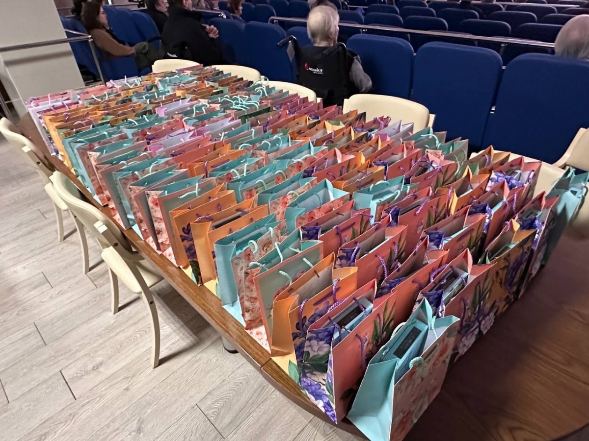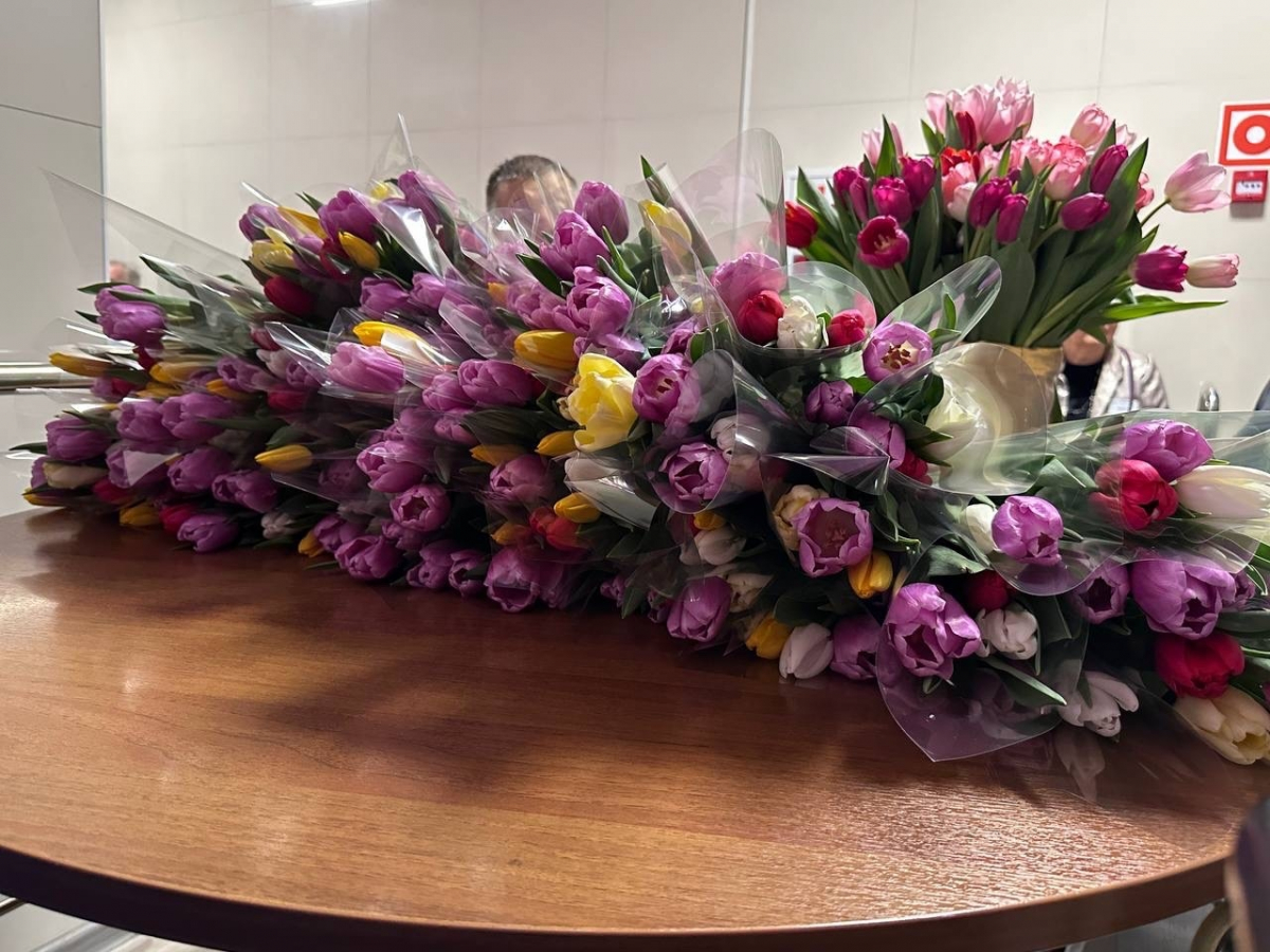 Кульминацией праздника, конечно же, стало поздравление для милых дам. Каждая женщина, присутствующая в зале, получила в подарок символ весны — нежные тюльпаны , а также полезные и приятные подарки от организаторов.