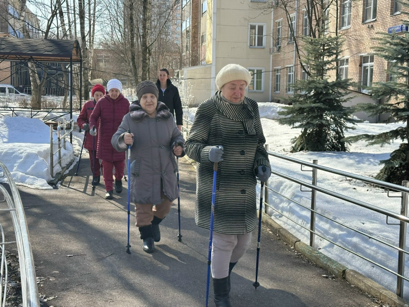 В нашем Центре мы продолжаем ежедневные занятия скандинавской ходьбой. Для наших жителей это уже не просто полезная привычка, а настоящий ритуал бодрости и отличного настроения.