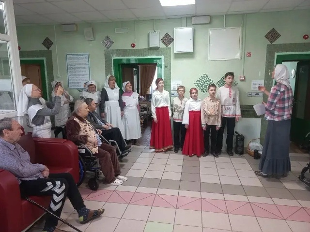 Ученики Воскресной школы поздравили жителей Центра с Пасхой!