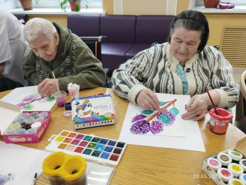 Рисование стало не только терапией, но и возможностью почувствовать радость творчества. А ветки сирени, созданные их руками, теперь украшают стены центра, напоминая о том, что возраст — не преграда для новых открытий.