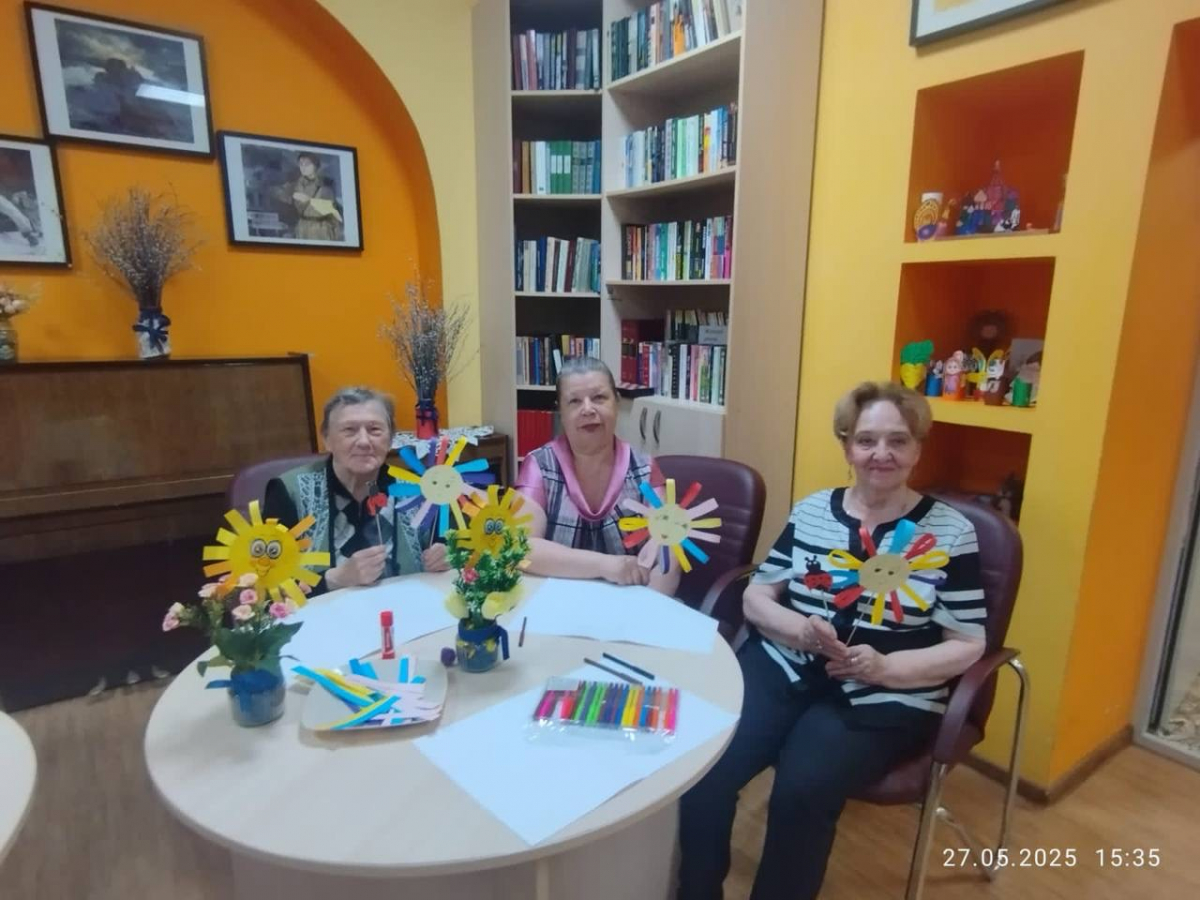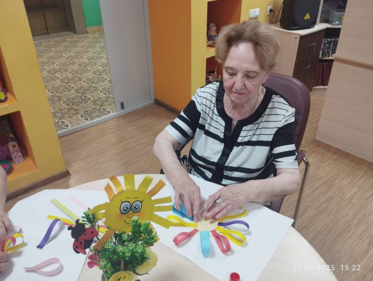 Каждый, от новичков до опытных мастеров, смог проявить фантазию: вырезать лучики, складывать объёмные элементы и украшать поделки блестками. Атмосфера была наполнена улыбками и вдохновением — казалось, само солнце поселилось в комнате!