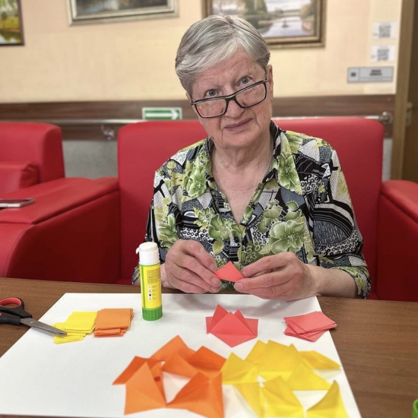 Сегодня в психологическом клубе «Жизнь в красках» прошел яркий мастер-класс по аппликации «Цветы». Участники — жители центра — создавали красочные букеты из цветной бумаги, погружаясь в мир творчества и радости, а психолог провела мониторинг эмоционального состояния жителей, используя проективные методики.