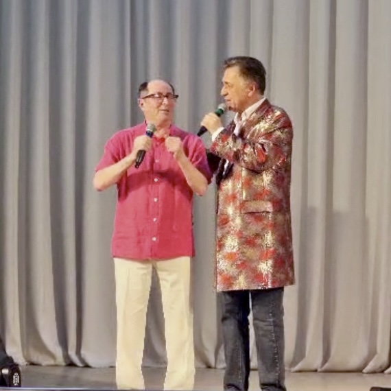 На сцену вышли два замечательных артиста: легендарный Михаил Слуцкий и яркий представитель современной эстрады Роберт Штаф! Их творческий союз подарил зрителям незабываемые эмоции. Звучали проникновенные патриотические песни, трогающие до глубины души, и любимые эстрадные хиты, под которые невозможно было усидеть на месте!
