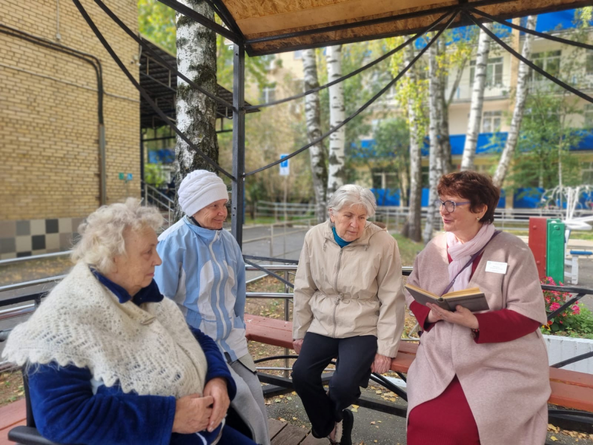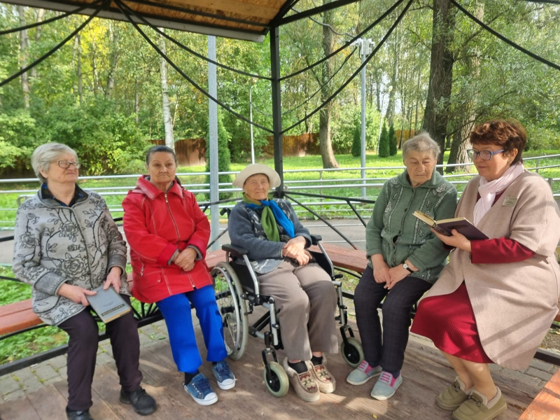 «Очень жду этих встреч в беседке! И погода прекрасная, и книгу интересную нам Эльвира подбирает. После таких чтений на душе становится так светло и спокойно, будто с хорошими друзьями поболтал. Спасибо за такую заботу!» — Валентина Ивановна