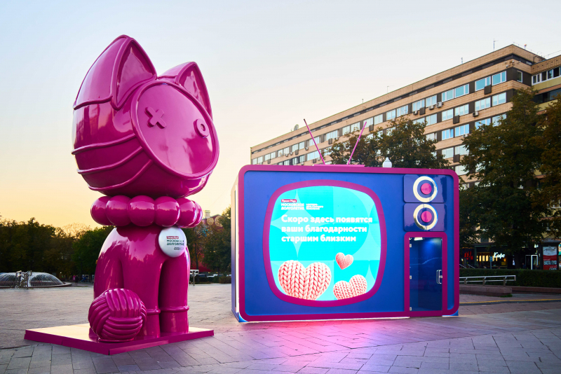 Самые трогательные послания появятся на медиафасадах по всему городу. Также сообщение может появиться на экране арт-инсталляции «Всё здесь не случайно» в Новопушкинском сквере. Для этого с помощью сенсорной панели рядом нужно написать добрые слова близким. Главный герой арт-объекта — кот, олицетворяющий домашний уют, мудрость и тепло, которое нам дарит старшее поколение. Девять жизней кота — это метафора бесконечных возможностей начать всё сначала в любом возрасте. Около кота лежит клубок ниток, символизирующий теплоту семейных уз и связь поколений, а рядом с ним установлен ретро-телевизор, на экране которого будут транслироваться благодарности от москвичей своим близким старшего возраста.