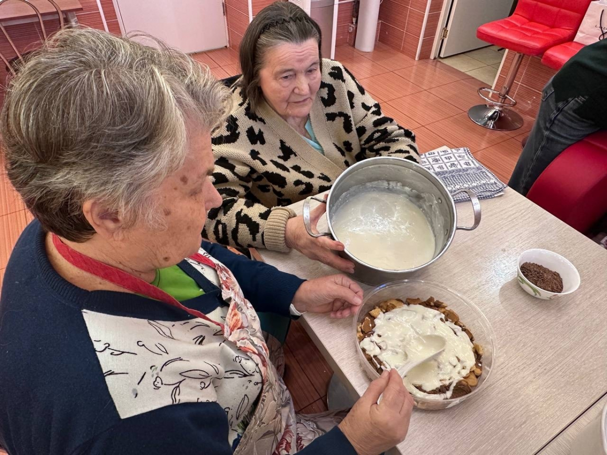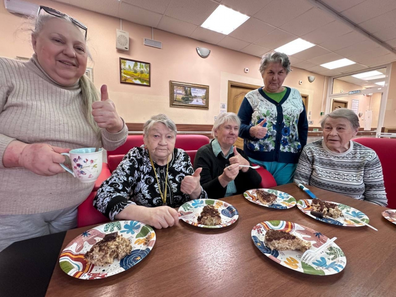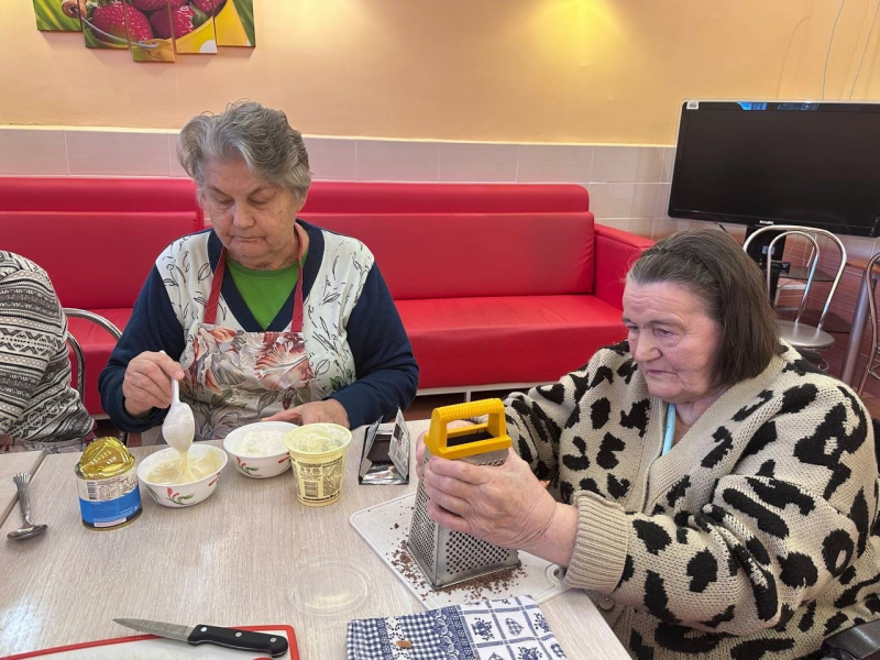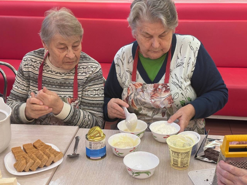 Рецепт оказался до гениальности прост: любимое «Юбилейное», немного ароматного шоколада и воздушный крем из сметаны и сгущенного молока. Пока наши жители с энтузиазмом создавали свой кулинарный шедевр, кухня наполнилась не только аппетитными запахами, но и живыми воспоминаниями. Участники с удовольствием делились другими замысловатыми рецептами блюд, которые не требуют выпекания — от прохладных муссов до изысканных закусок.