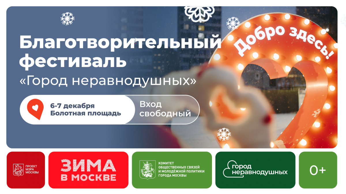 За предыдущие сезоны «Город неравнодушных» привлек больше 90 тысяч человек. Фестиваль проходит в рамках проекта «Зима в Москве», объединяющего зимние праздники и активности столицы. Узнать больше о том, как устроена благотворительность в Москве, познакомиться с исследованиями и афишей столичных НКО можно на сайте https://gn.moscow и в соцсетях «Города неравнодушных» https://t.me/gnmoscow