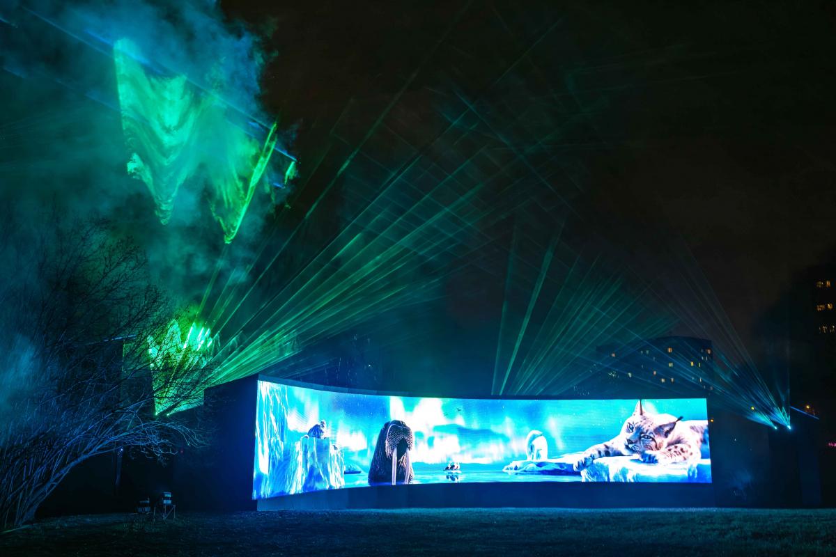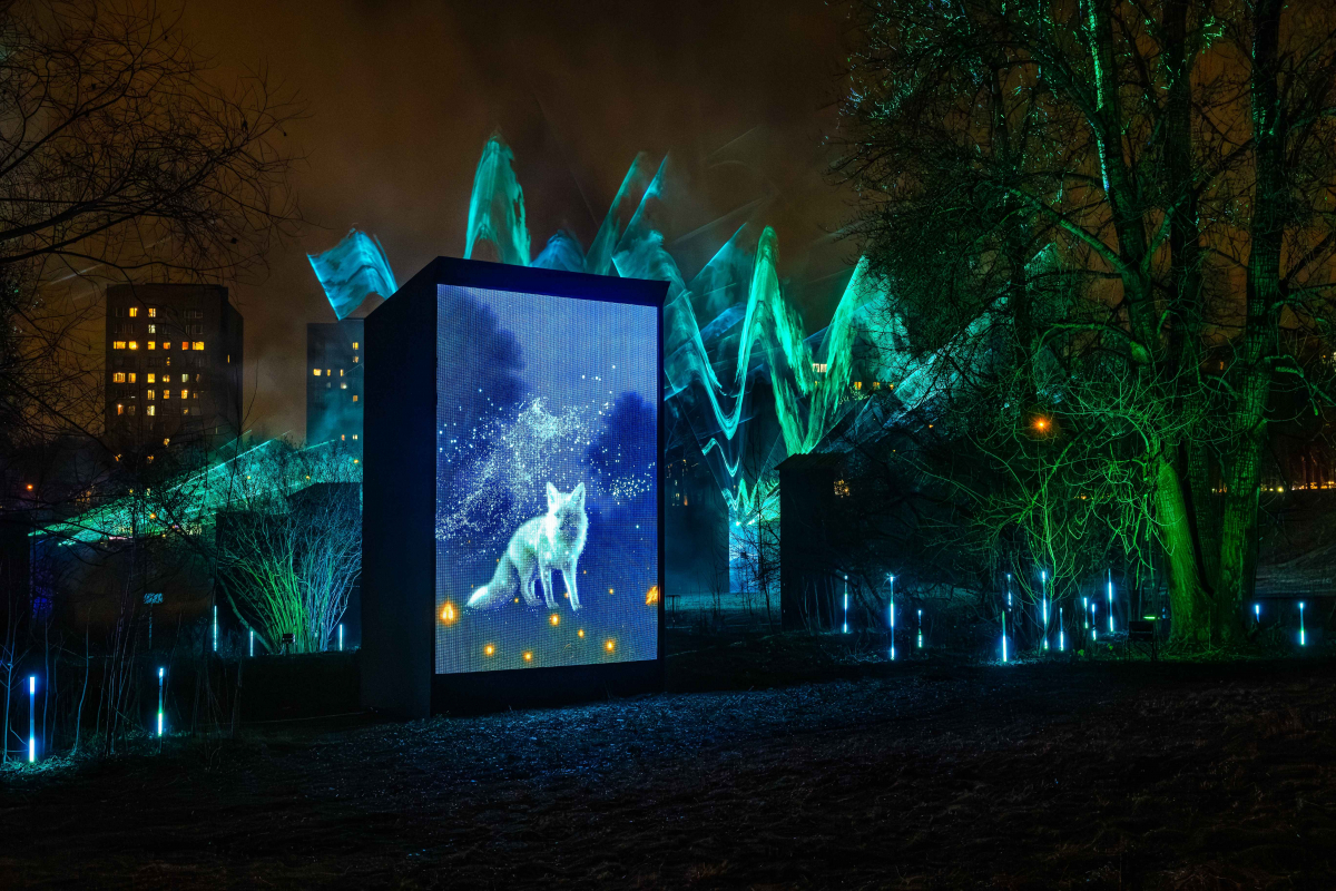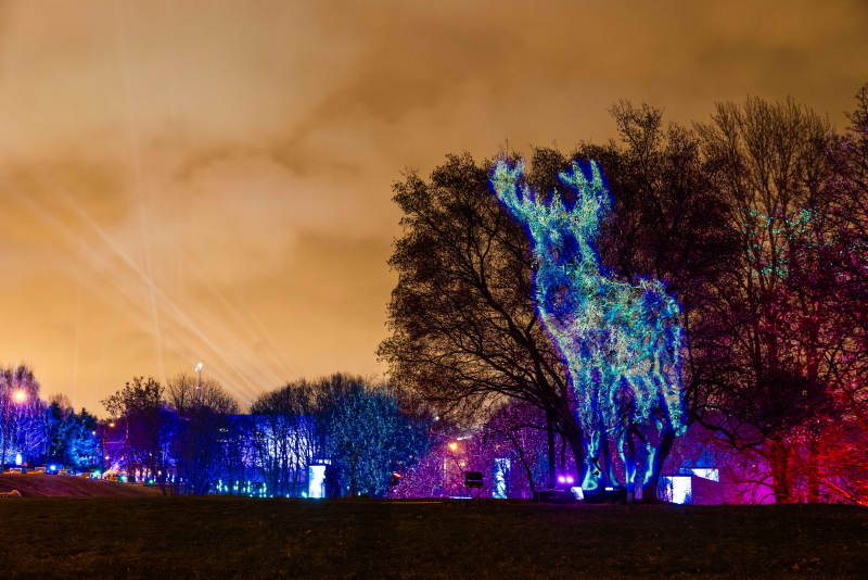 Каждый день гостей площадки ждет завораживающее световое шоу, которое подарит атмосферу праздника и яркие впечатления. В центре площадки по-новому «зажжётся» и легендарный костёр. Теперь эта инсталляция, выполненная в художественном стиле, станет частью световой постановки, соединяя историю Дворца пионеров с современной городской культурой. А в парковой зоне гости смогут увидеть северное сияние и встретить животных, которые будто появляются среди деревьев и кустов.