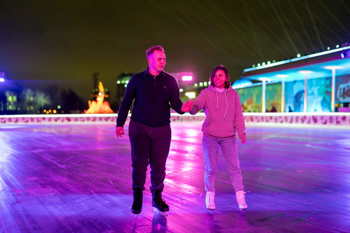 Бесплатный каток площадью четыре тысячи квадратных метров будет работать в любую погоду на протяжении праздников. Посетителям будет доступна аренда коньков и специальных пингвинов-помощников для детей. Кроме того, в зоне проката появится стильное кафе, где можно согреться горячим напитком и сделать паузу перед выходом на лёд. Чтобы попасть на сеанс, нужна предварительная регистрация на портале mos.ru.