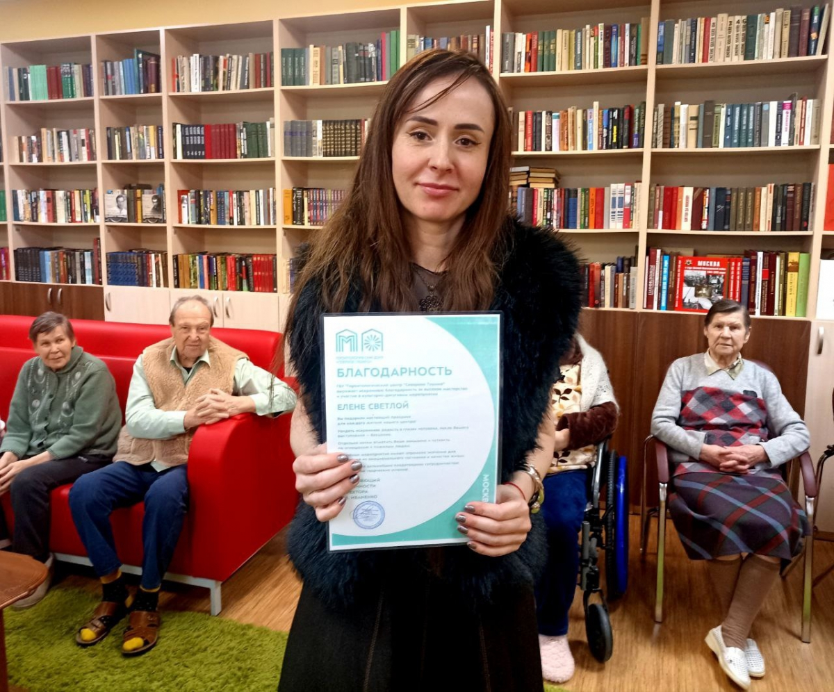 На творческом вечере поэтессы Елены Светлой стихи звучали в режиме живого диалога. Читали все: и сама Елена, и наши уважаемые жители, и сотрудники центра. Особую благодарность хотим выразить нашим коллегам, раскрывшим свои поэтические таланты: