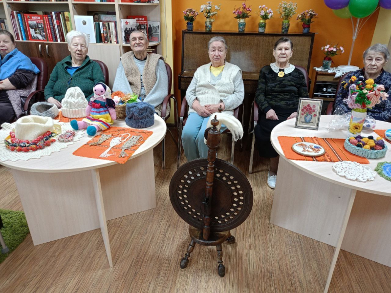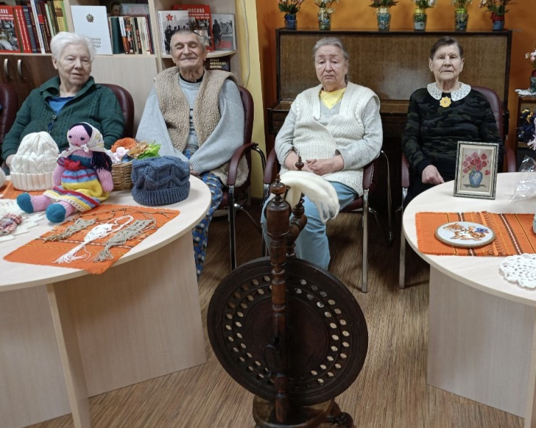 Вспоминали пушкинскую «Сказку о царе Салтане», где три девицы «пряли поздно вечерком», и Татьяну Ларину, которая «не знала игры в бадминтон, но с пяльцами за ней сидела». Говорили о том, что вязание, вышивка и шитье в литературе — это не просто быт, а символ ожидания, терпения, домашнего тепла и мудрости. Наши подопечные с удовольствием делились цитатами и собственными историями о том, как герои книг были похожи на них самих.