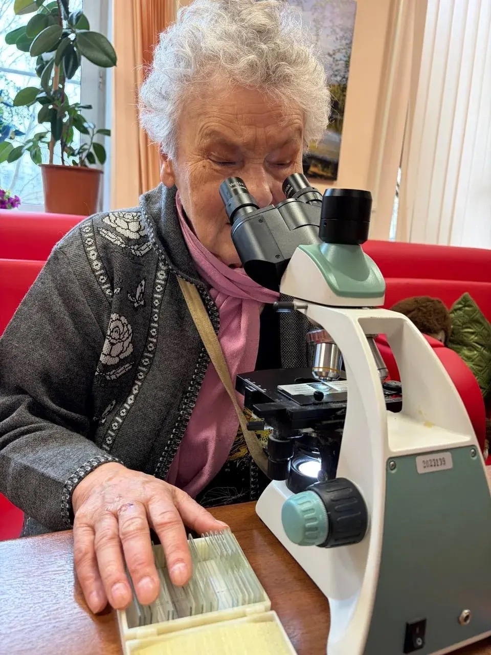 Занятие вызвало настоящий ажиотаж! Рассматривая чешуйку лука или волокно ткани, наши проживающие не только узнавали новое, но и делились историями из жизни, вспоминая свои школьные годы.