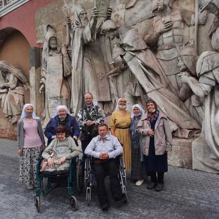 Но как-то вдруг все неожиданно хорошо стало складываться: и погода установилась идеальная, напрасно я запасалась всеми средствами на случай дождя, и сестрички и братья прибыли на помощь, несмотря на рабочий день, и даже водитель послушно отключил свое «Дорожное радио», чтобы мы смогли пропеть наш Акафист. Видимо, молитвами бабушек все устраивалось: они так ждали этого, так желали этой давно запланированной поездки. Нас объединяла какая-то всеобщая радость, казалось, благодатью дышал сам воздух, обнимающий нас. Не экскурсия – настоящее паломничество!..