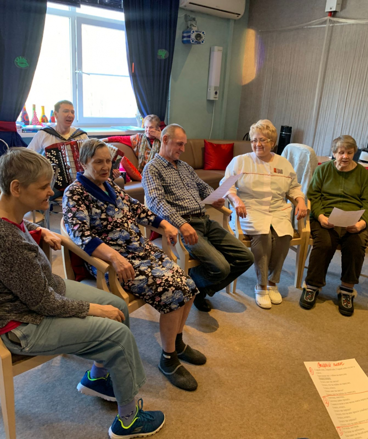 Психологический тренинг: " 5 шагов к хорошему настроению". Формулой хорошего настроения являются здоровое тело, ясный ум ,положительные эмоции и чувства. Смехотерапия - это лекарство от многих болезней." Сегодня мы с удовольствием приняли участие в психологических играх для создания положительного эмоционального настроения.Музыкальное сопровождение под баян очень оживило атмосферу тренинга и подняло настроение,-" говорит Мордовина Лидия Николаевна.