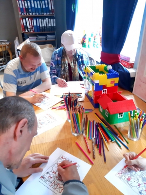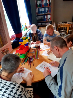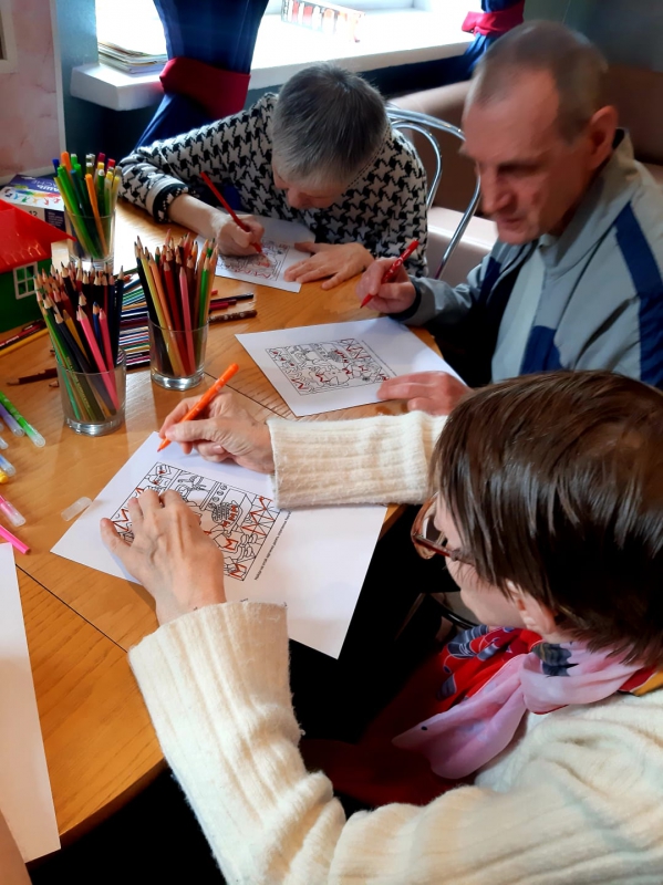 " Когнитивный тренинг" Что такое когнитивные тренинги? Это тренировка умственных способностей: памяти, внимания, мышления и скорости реакции. Сегодня участникам такого тренинга было предложено творческое задание: раскрасить небольшие изображения. При раскрашивании и рисовании улучшается тактильная чувствительность, пространственное мышление, мелкая моторика рук.Все участники тренинга провели время с огромной пользой,получили большое удовольствие и заряд хорошего настроения.