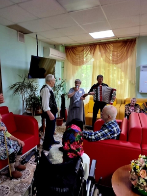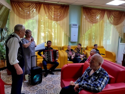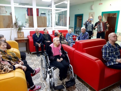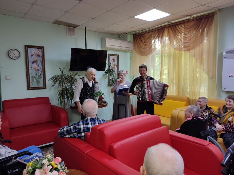 "Я забыть никода не смогу..." В нашем доме мы всегда стараемся радовать творчеством и разнообразным досугом тех проживающих ветеранов, которые в силу своего состояния не всегда могут посещать массовые мероприятия. Сегодня наш замечательный творческий коллектив" С песней по жизни" доставил радость и выступил с концертом военных песен в отделении "Сестринский уход ".Многие наши проживающие имеют звания "Ветераны войны" ,"Дети войны" , "Труженики тыла".