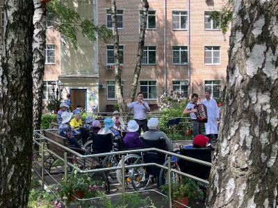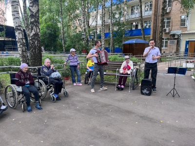 У нас сегодня в геронтологическом центре «Северное Тушино» царит по настоящему летняя атмосфера! Утро началось с музыкальной программы «Играй, гармонь!» все проживающие звонко подпевали известным хитам и авторским песням наших культорганизаторов! «Для пожилых людей очень важно и полезно петь, ведь так они могут погрузится в свои воспоминания и к тому же потренировать свою память!»- поделился с нами М.Е. Михайлов культорганизатор.