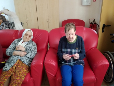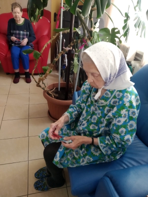 Что такое мелкая моторика? Это разнообразные движения пальцами и ладонями. Учёные давно доказали, что зона мозга, отвечающая за движение , близко расположена к зоне, отвечающей за речь, мышление, память, координацию движений. Один из методов- это упражнения с цветными карандашами ( " добывание огня", " вертолет", " игра на пианино", " лесенка", " ладошка". Проведен метод пальчиковой гимнастики с бельевыми прищепками, что вызвало интерес и улыбки у проживающих, рассказала специалист по реабилитации Кондракова И .А.