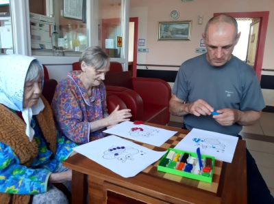 Творческие занятия по прикладному искусству- "Мастерская добра ". Ежедневные тематические мероприятия с проживающими ГЦ раскрывают потенциал, поднимают настроение,сохраняют ресурсы на долгие годы." Мозгу, мелкой моторике, всему организму надо давать нагрузку. В любом возрасте очень полезно заниматься любыми интеллектуальными и творческими развлечениями. Я занимаюсь с большим энтузиазмом, проявляю свою индивидуальность" ,- говорит проживающий Прохоров Сергей Владимирович.