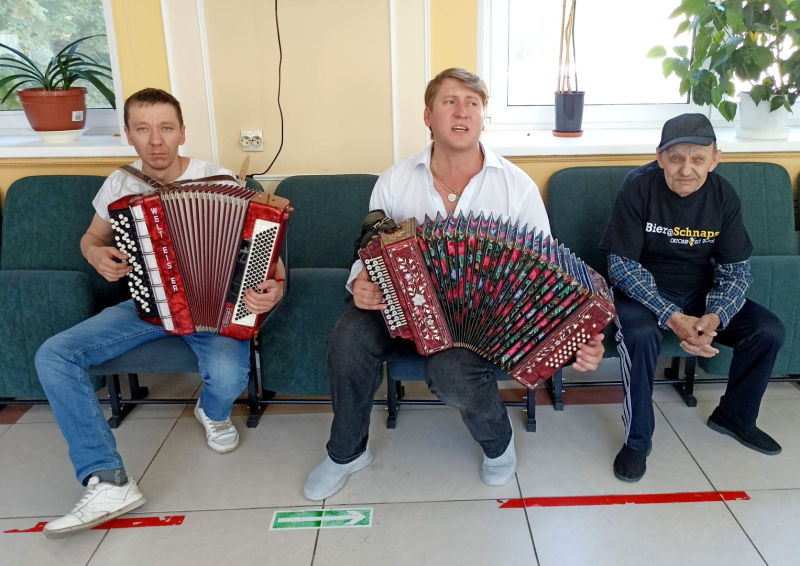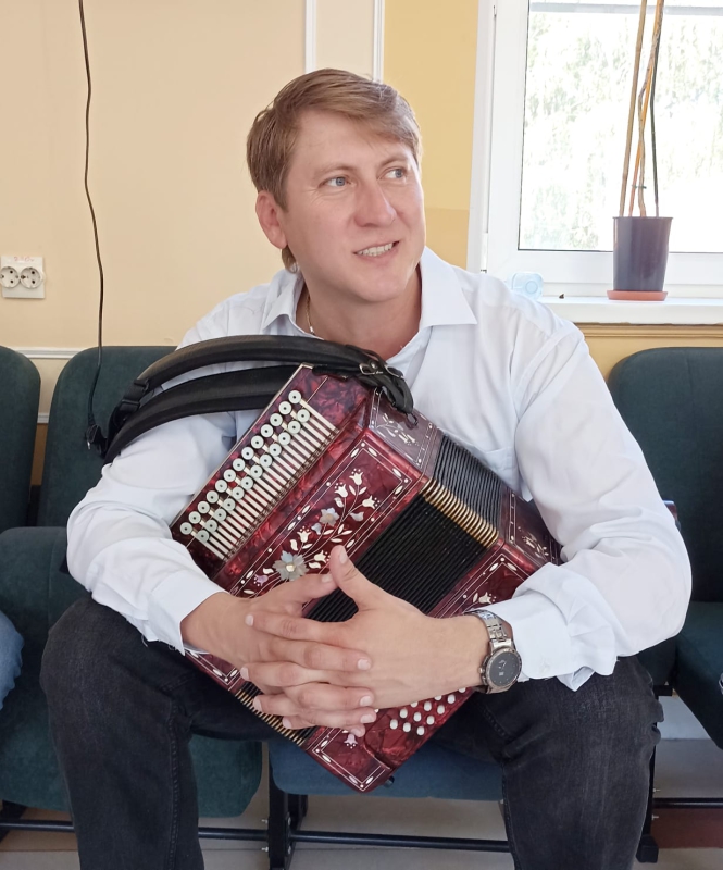 Сегодня 12 августа вместе с гармонистом все пели, говорили о гармони, исполняли редкие народные и городские песни, задавали гостю много вопросов и слушали его интересные рассказы о творчестве и музыке.