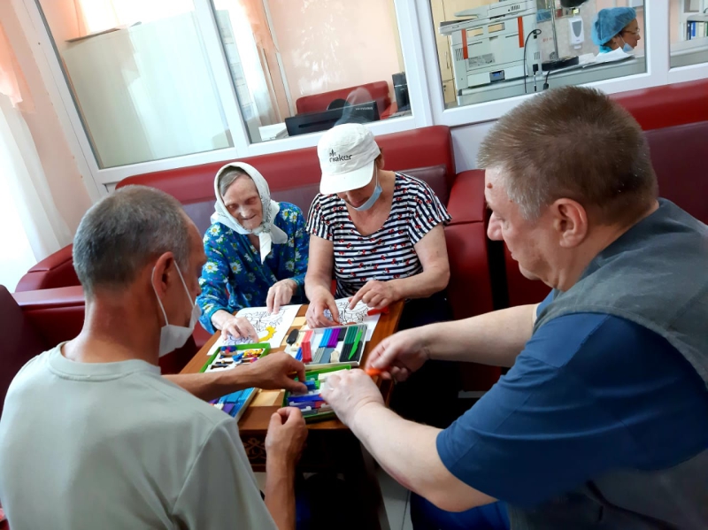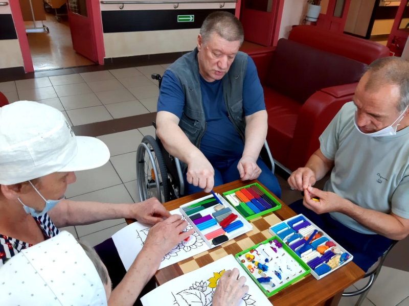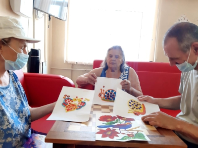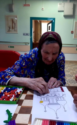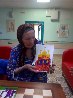 Творческие занятия по прикладному искусству- "Мастерская добра ". Ежедневные тематические мероприятия с проживающими ГЦ раскрывают потенциал, поднимают настроение,сохраняют ресурсы на долгие годы." Мозгу, мелкой моторике, всему организму надо давать нагрузку.