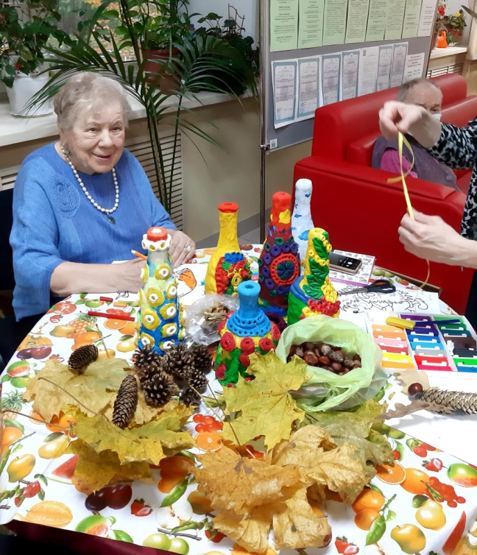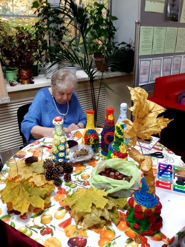 " День старшего поколения ".1 октября в нашем Геронтологическом центре прошло мероприятие посвящённое Дню старшего поколения. В фойе учреждения все желающие смогли поучаствовать в мастер-классах по рисованию, лепке декоративных ваз, изготовлению осенних композиций из природных материалов. Затем в актовом зале состоялся праздничный концерт. С приветственным словом выступила директор нашего ГЦ Эллада Агаевна Мусаева : " Мы искренне поздравляем людей старшего поколения с праздником мудрости и добра! За вашими плечами большая жизнь! Желаем вам улыбок, добра и человеческого тепла ! Долгих вам лет жизни, крепкого здоровья и душевной гармонии!".Со сцены прозвучали всем хорошо знакомые и любимые песни.Зрители зарядились прекрасным настроением, они пели вместе с артистами, детскими коллективами Культурного центра "Алые паруса".После концерта состоялся праздничный обед и вручение сладких подарков.