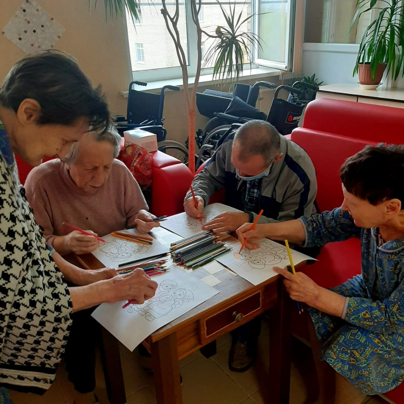 Психологический тренинг: Жизнь в красках".Каждый человек хочет быть здоровым в самом широком понимании этого слова .Не менее важен и психологический статус, эмоциональная стабильность, внутренняя целостность.Обладая в достаточной мере подобным потенциалом , наши проживающие проще справляются с неизбежными стрессами и выстраивают доброжелательные отношения с окружающими." После консультации с психологом мне становиться легче.Я понимаю как построить диалог в конфликтных ситуациях, меня научили держать себя в руках. Сейчас я стала гораздо спокойнее," - говорит проживающая Попова Зинаида Николаевна.