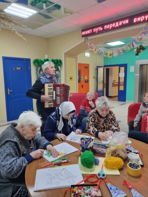 Сегодня в нашем Геронтологическом центре состоялось праздничное мероприятие "Музыкальный серпантин у ёлки", участники которого пели под баян, танцевали, рисовали и мастерили поделки-игрушки "Ёлочки из нитей". Все участники получили массу положительных эмоций, сладости и новогодние сувениры - теплые варежки, которые им передали проживающие социального дома "Вешняки". Праздник прошёл эмоционально, весело и задорно и хорошее настроение всех присутствующих было главным итогом мероприятия!