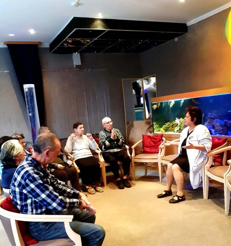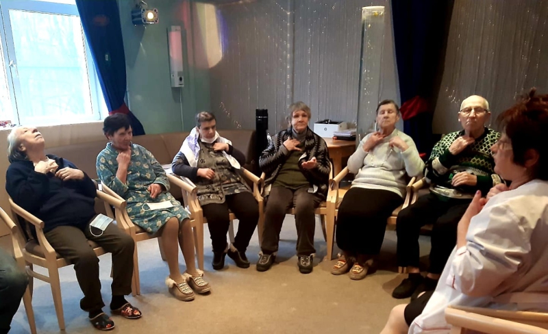 Hелаксационный тренинг: "В здоровом теле-здоровый дух" Сегодня в сенсорной комнате нашего ГЦ прошёл психологический тренинг, в рамках которого участники смогли отрегулировать свое эмоциональное состояние с помощью дыхания, специальной расслабляющей музыки и особой атмосферы гармонии умиротворения. А также получили оздоровительные техники и упражнения, которые можно практиковать и в домашних условиях. Все проживающим ветеранам очень понравилось сегодняшнее мероприятие и они с нетерпением ждут продолжения таких интересных практик.