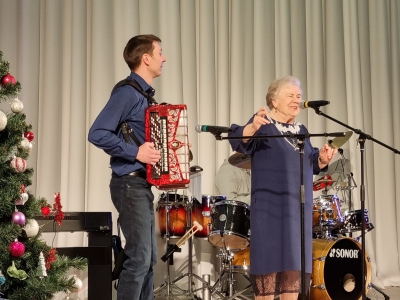 Зима - самое богатое праздниками время года: Новый год, Рождество, Крещение....Один из них - Новогодние Святки - Старый Новый Год. Замечательно , что такой праздник повторяется дважды и мы имеем возможность поздравить всех, встретиться с друзьями и ещё раз зажечь огни новогодней ёлки. Сегодня мы собрались в уютной, по - домашнему тёплой атмосфере, при ярком свете ёлочных огней. Наши ветераны- люди старшего поколения с удовольствием общались, веселились, танцевали, принимали активное участие в различных конкурсах и викторинах, загадывали и отгадывали загадки от нашего бессменного ведущего - Михаила Михайлова. Подарком для наших проживающих ветеранов стало выступление талантливой певицы Натальи Лернер. Праздник понравился всем - это было видно по улыбающимся лицам ветеранов, ведь такое мероприятие даёт возможность забыть свой возраст и почувствовать вновь себя молодым!