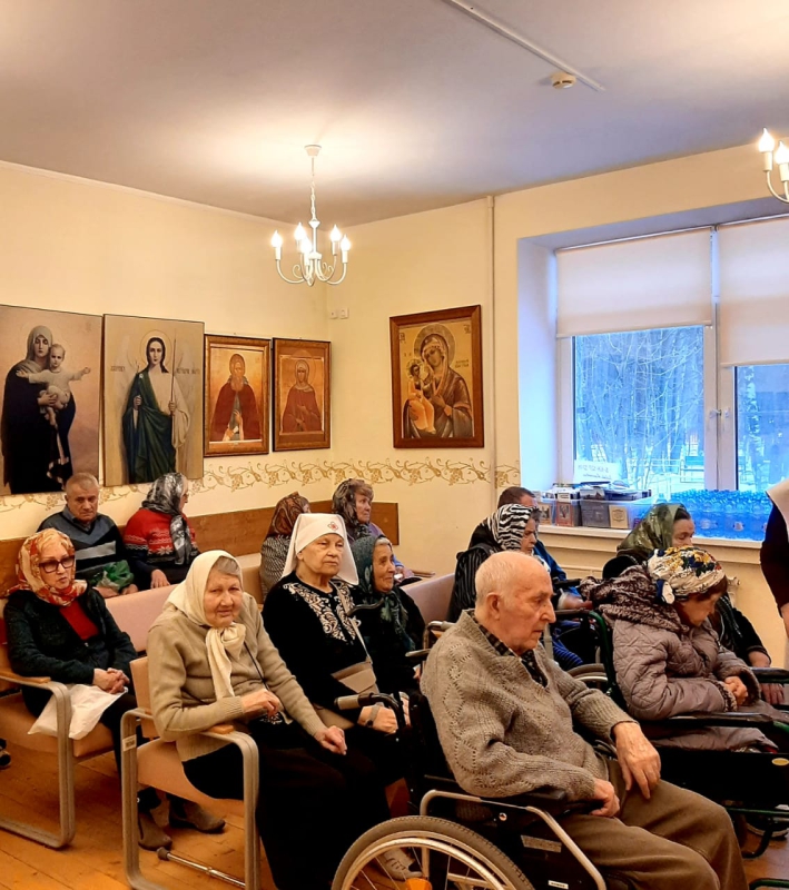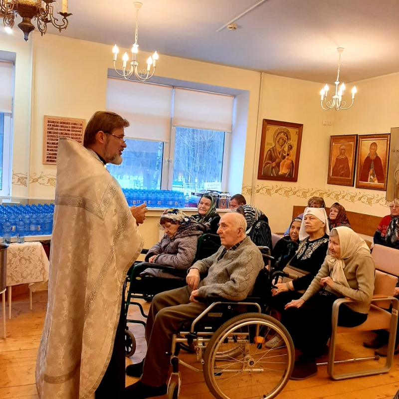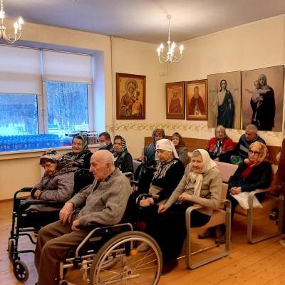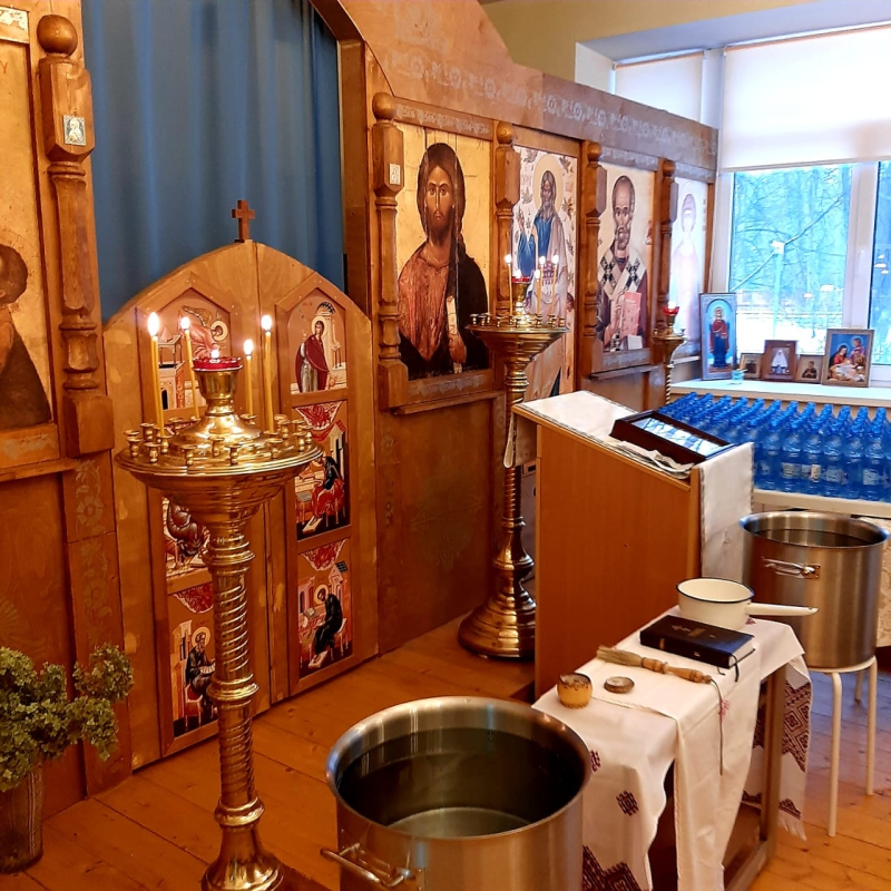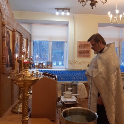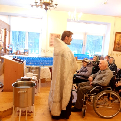 "Крещенский сочельник. Водосвятие." Накануне праздника Крещения Господнего в домовом храме Геронтологического центра "Северное Тушино" прошло освящение воды. Верующие собрались на молебен водосвятия. Считается, что вода после водосвятия лечит от недугов, улучшает самочувствие и защищает. Вода не теряет целебных свойств в течение целого года.