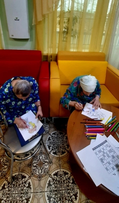 Психологический тренинг:" Антистрессовая терапия". Сегодня получатели социальных услуг смогли ощутить на себе живительную силу и антистрессовое воздействие живописи. Во время того, когда мы рисуем, мы реализуем свой творческий потенциал, что в свою очередь помогает избавиться от раздражительности и усталости. Во время любого творческого занятия человек избавляется от негативных эмоций, при этом расслабляется и высвобождает эмоции, запрятанные глубоко внутри. Они получили заряд положительных эмоций и профилактику депрессивных состояний.