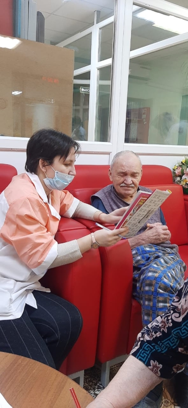"Индивидуальная работа с психологом". Деятельность по психологической помощи в условиях Геронтологического центра позволяет использовать множество методов и средств, которые могут способствовать активизации психической деятельности пожилых людей.Обязательным элементом деятельности в Геронтологическом центре является групповая психокоррекционная работа (тренинг-группы), направленная на снятие негативных переживаний, эмоционального напряжения, снятие личных страхов, установления нормального уровня взаимоотношений, коммуникаций. Помимо изучения особенностей личности психолог учит пожилого человека общению с другими проживающими, умению понимать человека более немощного, чем он сам, осмыслению ситуации совместного проживания.