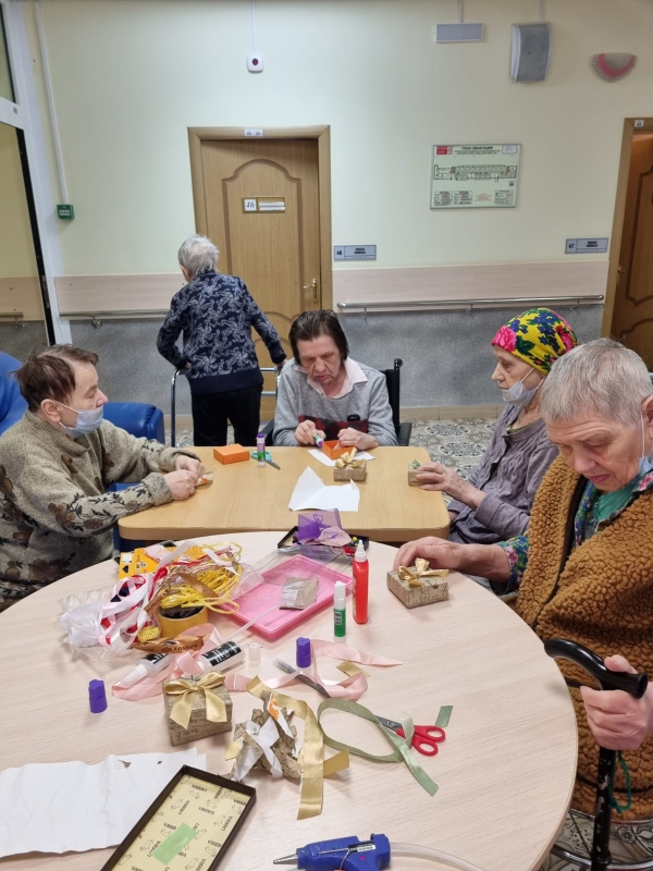 Сегодня в нашем Геронтологическом центре прошел мастер-класс по изготовлению подарочных коробочек своими руками. Наши дамы старательно мастерили для своих сыновей, родственников и друзей оригинальные подарочные упаковки которые могут сопроводить подарок или быть отдельным подарком , например для хранения часов. Как и всегда, наша творческая встреча прошла в дружеской и теплой обстановке и подарила положительные эмоции всем присутствующим!