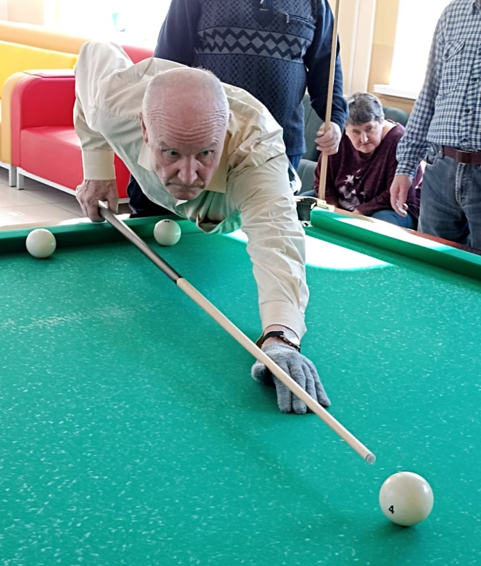 В нашем центре прошел турнир по бильярду среди жителей Геронтологического центра «Северное Тушино». Все участники турнира показали хорошую любительскую игру в бильярд. Игра закончилась ничьей, а это значит победила дружба! Такие спортивные мероприятия уже не в первый раз становятся отличной возможностью для наших жителей создать дружескую атмосферу в коллективе. Все участники получили заряд хорошего настроения и бодрости!