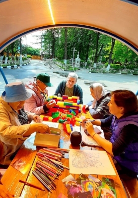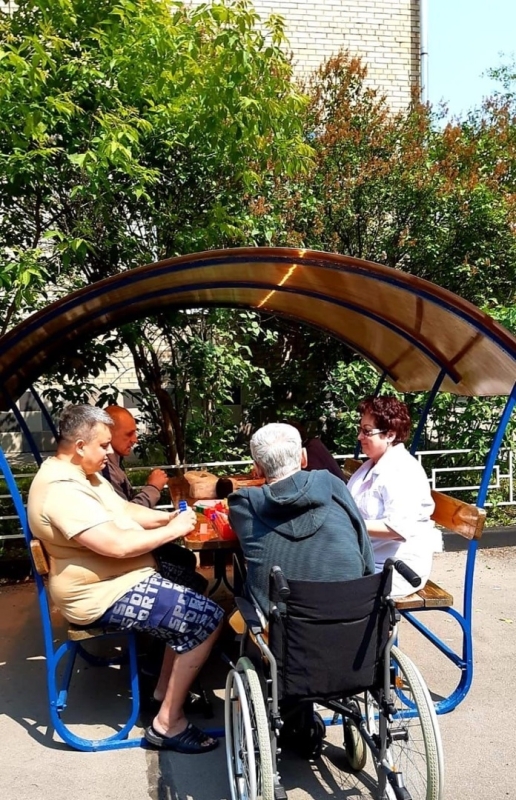 Сегодня в первый день лета замечательная погода и наши проживающие с удовольствием занимаются на свежем воздухе развивающими занятиями . Людям преклонного возраста необходимо поддерживать умственную деятельность, точно так же как и укреплять свое тело, делать по утрам зарядку. Именно мозг, в течение всей жизни отвечает за хорошее настроение и ощущение счастья. Поэтому пожилым людям, необходимо сохранять интеллект и тренировать мозг, заполняя свободное время активной деятельностью .