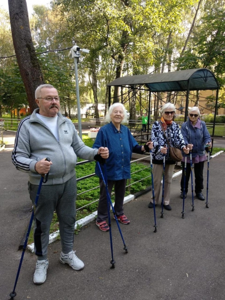 В нашем Геронтологическом центре " Северное Тушино" в рамках школы здоровья и реабилитации проводятся ежедневные занятия и обучение новичков технике скандинавской ходьбы. Свежий воздух чрезвычайно полезен для нервной системы человека, а если совместить прогулки с элементами скандинавской ходьбы в группе и с инструктором, то результат получается ещё лучше. Как хорошо спится после таких прогулок, решаются проблемы со сном, отмечают наши постоянные участники. Появляется лёгкая, приятная усталость, необычайный прилив сил и чувство правильности своих действий для здоровья.