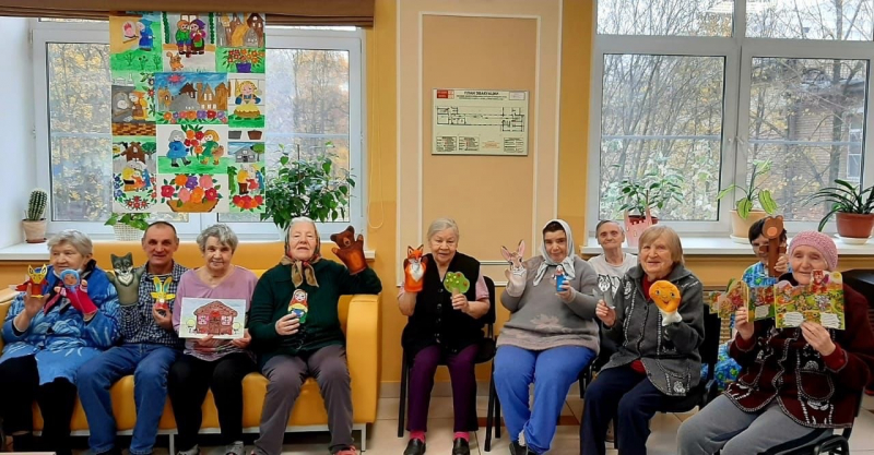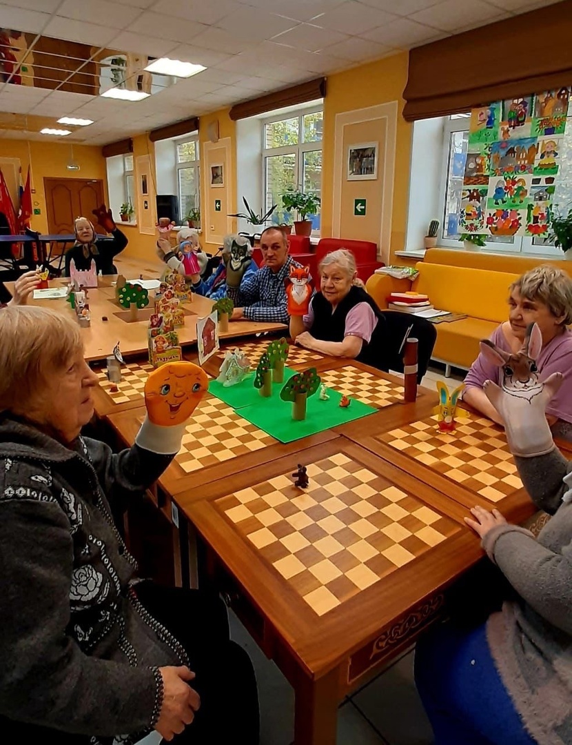 Наши проживающие с удовольствием принимают участие в групповых занятиях сказкотерапии. Сегодня мы провели его в форме настольной игры «Театр на столе».