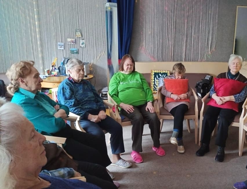 Сегодня участники клуба психологической поддержки "Жизнь в красках" геронтологического центра "Северное Тушино" впервые ощутили на себе эффективность мышечной релаксации. Комната психологической разгрузки отлично в этом помогает. В повседневной жизни нам редко удается выделить время для себя, отставив все дела и тревожные мысли, и тут на помощь приходят встречи с психологом. После сеанса расслабления под приятные звуки морского прибоя участники выполнили арт-терапевтическое упражнение "Волшебные каракули". Его пользу вы можете проверить на себе: возьмите левой рукой карандаш и с закрытыми глазами выводите каракули по всему листу в течение 1 минуты. Затем попытайтесь увидеть в этом какие-либо образы и раскрасьте их. Считается, что образы, которое выделило ваше подсознание, являются значимыми для вас на данный момент и сообщают об актуальном жизненном конфликте.