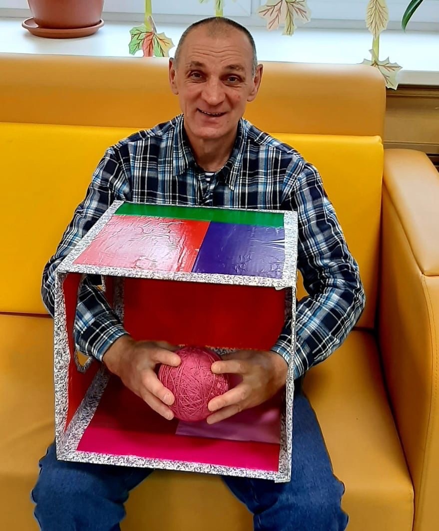 занятие с психологом было очень интересное. Мы делали такую коробку своими руками. Это нехитрое изобретение знакомо, наверно, всем нам. Ещё в детстве мы все любили брать мамины или бабушкины банки, или корзинки с пуговицами и всякими мелочами, при первой возможности копались в ящике с отцовскими гайками и винтиками."- говорит проживающий Андрей Николаевич.