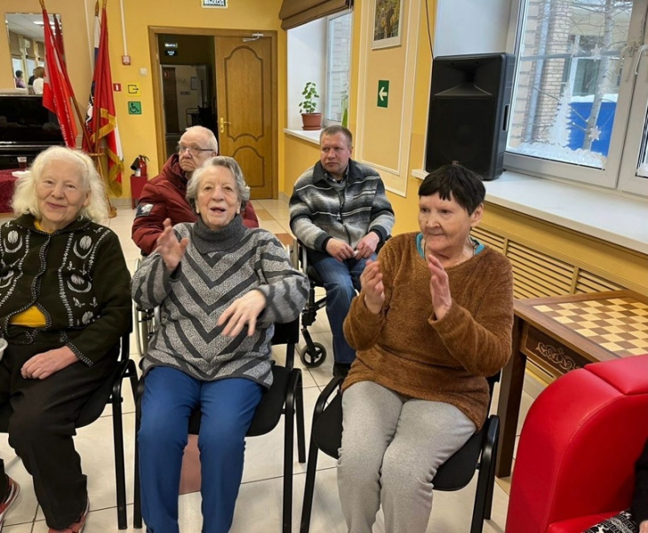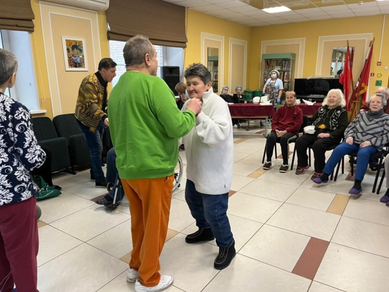 И одно из них прошедшее сегодня- "Зимнее веселье"с песнями,танцами и играми от души.Все участники праздника пели любимые песни, кто то не мог усидеть на месте и пускался в пляс под веселые ритмы.Такие душевные и веселые встречи сближают и радуют наших проживающих .