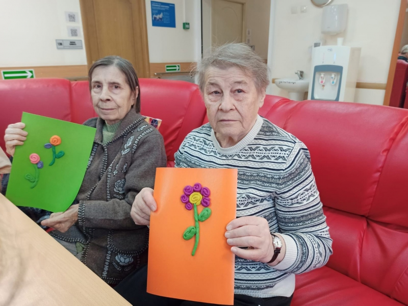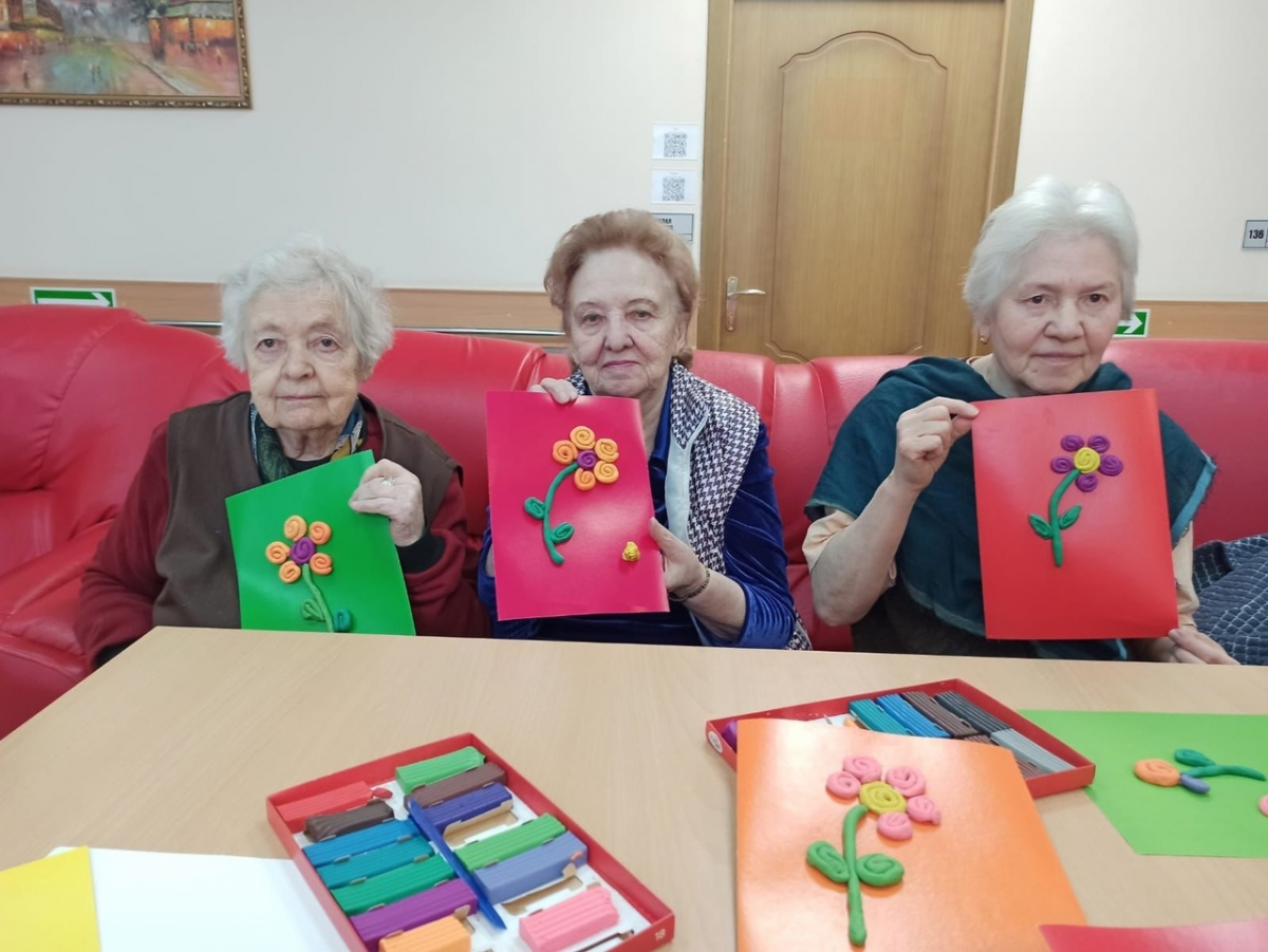 приближения весны. Сегодня они это выразили в ярких, красочных аппликациях из пластилина. Пластин-отличный помощник не только для развития творческих возможностей, но и для улучшения мелкой моторики рук, тренировки когнитивных функций и профилактики деменции. Валентина Петровна уверена, что такие занятия улучшают эмоциональное состояние, поднимают настроение.