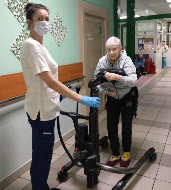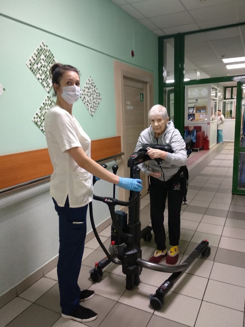 Благодаря программе Правительства Москвы, в Геронтологическом центре" Северное Тушино", появилась возможность использовать мобильную вертикализационную систему " Rifton Tramp" для наших проживающих. Многие инвалиды, имеющие проблемы с позвоночником, движениями нижних конечностей после перенесенных травм и заболеваний, вынуждены много времени проводить лёжа в кровати или передвигаться сидя в коляске. Мир стоя выглядит по другому, когда человек лежит- мир смотрит на него, а когда стоит-он смотрит на окружающий мир с высоты своего роста и воспринимает пространство многомерным, а не ограниченным . Вертикализация положительно влияет на все системы организма, развивает вестибулярный аппарат,позволяет организму чувствовать мышечный каркас. Кроме того, вертикализация играет немаловажную роль в улучшении бытовых навыков, социализации и принятии себя. Реабилитация- долгий процесс, но он того стоит .