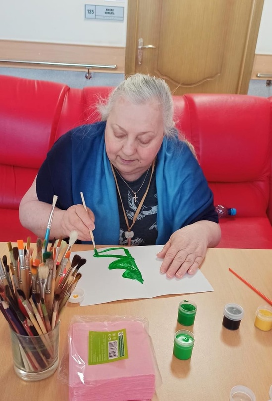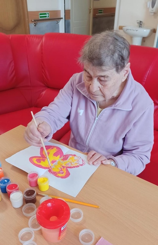 Арт-терапия является отличным средством против негативных эмоций, в том числе тревоги и плохого настроения. Одно из ее направлений на себе попробовали проживающие геронтологического центра "Северное Тушино". Рисование с помощью отпечатков- простой и доступный способ для каждого разбудить в себе творца! Лист делится пополам, на одну половину наносится рисунок, и затем отпечатывается путем сложения листа. В качестве тематики рисунков была выбрана бабочка - символ души и трансформации к лучшему. Наши художники поделились, что упражнение заряжает позитивными эмоциями и приносит радость от результата собственной работы.