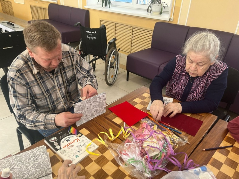 2 апреля отметили Международный день детской книги. Эта дата выбрана не случайно и совпадает с днем рождения главного сказочника в истории – Ганса Христиана Андерсена. Все мы, когда были маленькие любили чтобы нам читали сказки, а вырастая читаем их нашим детям и внукам. Вот и сегодня на творческом мастер-классе наши проживающие создавали «Волшебную книгу». Участники мастер-класса с большим воодушевлением подошли к украшению обложки: тематические наклейки, бантики, сердечки украшают поделки снаружи, а внутри скрывается самое интересное - раскраска. Кто раньше справился с заданием, с энтузиазмом принялись раскрашивать новые узоры, но есть среди наших проживающих и такие кто решим подарить поделку любимым внукам. Сказочным настроением зарядились все участники мероприятия!