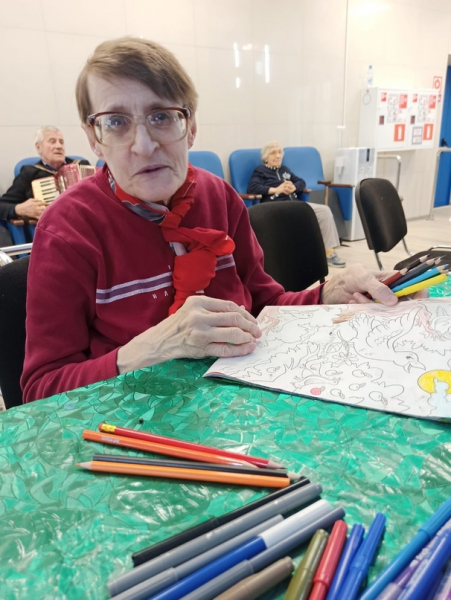 В мире, где добро и сотрудничество становятся всё более ценными, волонтёры занимают особое место. Они готовы прийти на помощь всем, кто в ней нуждается. Сегодня к проживающим Геронтологического центра "Северное Тушино" пришли добрые друзья: волонтёры добровольческого движения "Даниловцы". Для маломобильных проживающих была организована прогулка по территории, а для остальных - занятия по интересам . Ольга Дмитриевна и Елена Витальевна любят рисовать и стараются не пропускать эти встречи. С помощью цветных карандашей они раскрашивали картинки, стараясь не заходить за границы рисунка. Ольга Дмитриевна поделилась своими впечатлениями: "Раскрашивание успокаивает меня, улучшает моё эмоциональное состояние". А Елена Витальевна добавила, что рисование поднимает ей настроение. Станислав Викторович уверен, что если есть такие люди, то жизнь становится лучше и светлее.